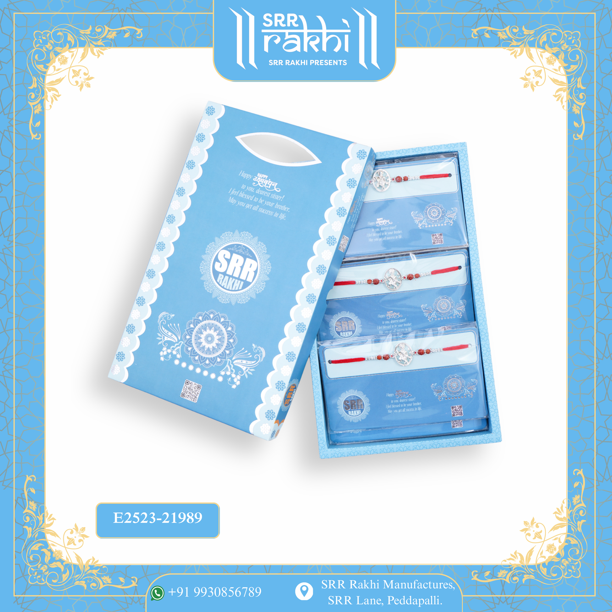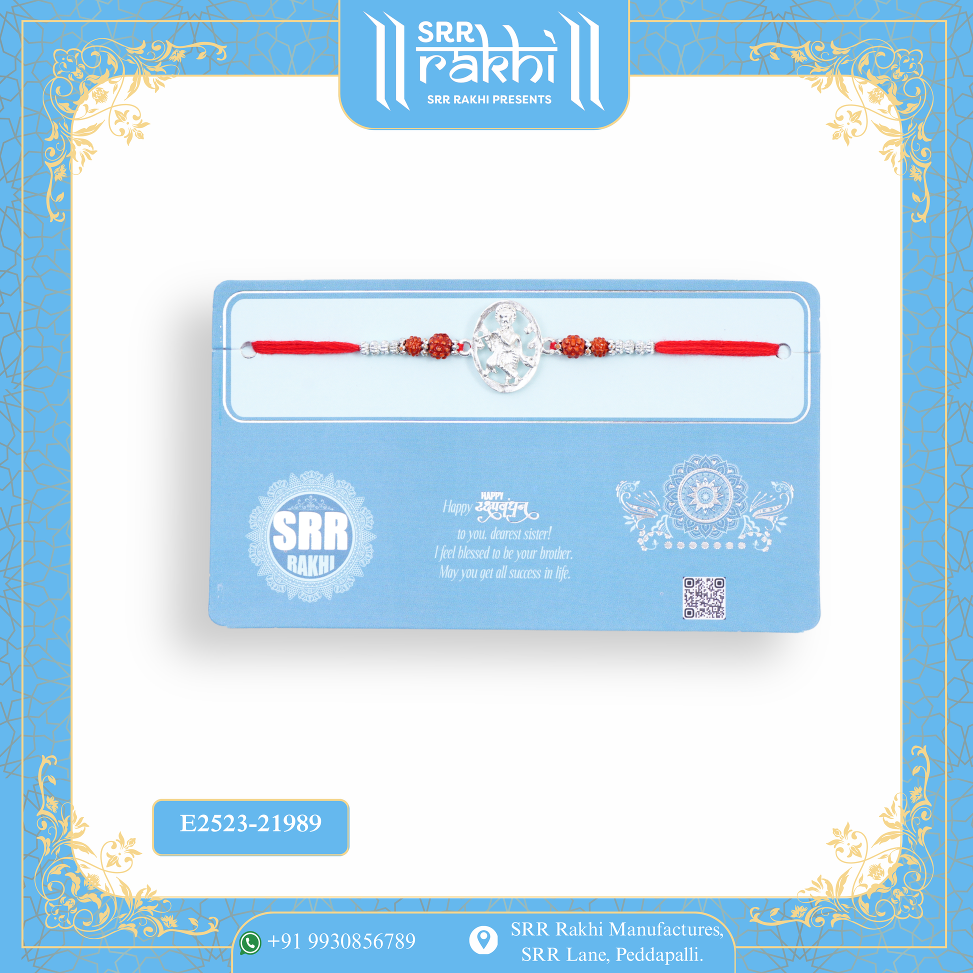 Ward off negativity and celebrate the sacred bond of Raksha Bandhan with our Evil Eye Card featuring a premium Silver Pendant Rakhi. Thoughtfully designed, the card showcases a striking evil eye motif known for its protective symbolism, while the rakhi includes a finely crafted silver pendant that adds a touch of elegance and tradition.