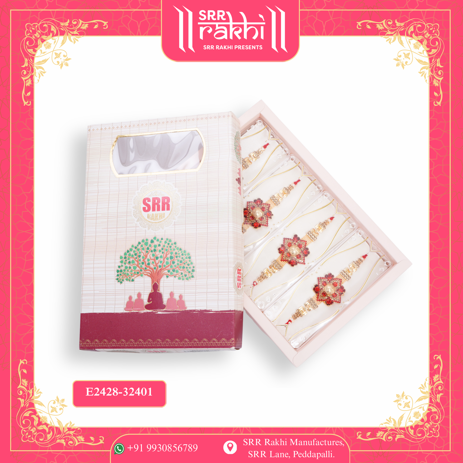 4 PCS PLASTIC BOX WITH HANDCRAFTED CHAIN RAKHI